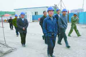 昨日北京南站站房工程停工,工人们接受安全教育。 记者 吴江 摄