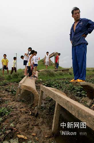 记者十三日下午赶到事发地点,看到村子里许多树木被风吹得东倒西歪。在龙卷风袭击最为严重的地方,一座用水泥钢筋建的水渠倒塌了近五十米,残碎的遗留物散落在农田上,一段没有被吹倒的水渠部分顶柱出现了断裂。