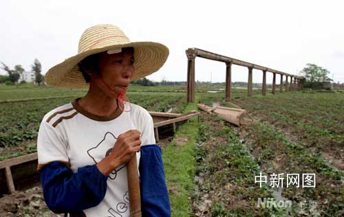 望着身后倒塌的水渠及损毁严重的番薯,村民伤心不已。作 者:李忠