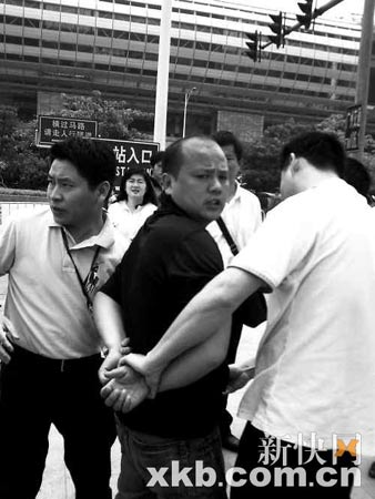 昨日,两名便衣警察抓获一名假证贩子。王华平/摄