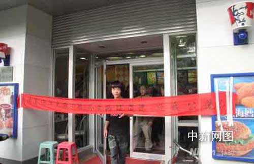 在派出所3次出警无效下,愤怒的陈女士做出了在肯德基店门口 拉横幅拦顾客的举动。而肯德基方面更是以锁住店门把陈女士连同当时还在就餐的10几名顾客一起困在了店堂里。时间长达一个多小时。最后还是在围观群众的愤怒声中才打开店门。