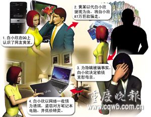 为应付天天喊拿钱回家的母亲,白小欣通过QQ聊天,以一夜情作诱饵,与外地来渝(重庆)出差的男子开房,先后骗走4台笔记本电脑。