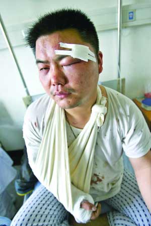 躺在病床上的王骐右手一直打着绷带,面部依然肿得老高,左眉上的伤口也尚未拆线。经过三天多的消炎治疗,王骐的断臂终于消肿了不少,手术初步定于今天上午进行;而头部和面部受伤的郑毅,虽无须住院治疗,但伤口处仍被纱布包着。这几天,他一直在等着警方的调查结果和街道城管科的说法。