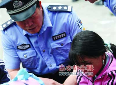 昨天下午5时30分左右,记者在一百货店门口见到了两个小女孩坐在地上,看到那么多警察围过来,都被吓得哭了起来。