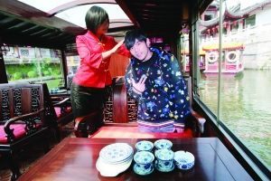 “杰伦号”上最特别的就是一幅与杰伦同比例的大幅纸质模特,笑容满面地坐在原来杰伦坐的位置上,前面的茶几上还放着杰伦品尝过的状元豆、雨花茶。据称,这个“模特”可以供游人照相。