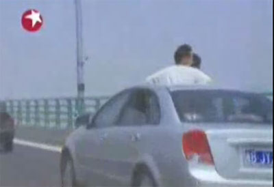 很多车辆超慢行,车内人站着观看风景。(东方卫视截图)