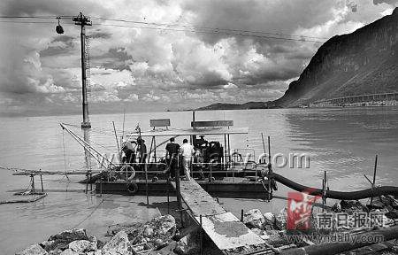 去年6月25日,滇池蓝藻大面积暴发,图为打捞船正在抽取蓝藻(资料图)