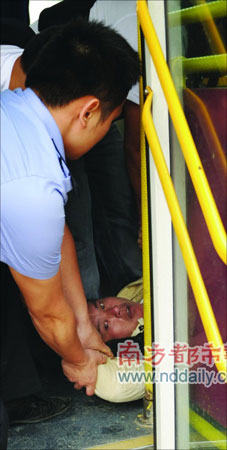 逃出生天后,陈先生迅速跳下车。“我的脚都发麻了,要好好活动一下筋骨。那个人有神经病,我都不认识他。现在我的脖子还痛得要命,真想狠狠揍他一顿。”陈先生愤怒地对记者说。记者发现,陈先生喉咙边已经被钢筋顶得发红,周围还有小小的划痕。