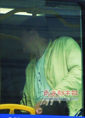 6点55分,记者开着车两次从事发公交车左边经过,透过车窗可看到一个穿着白色衣服的男子,站在驾驶座附近,左手拿着钢筋制成的凶器顶住一名穿黑衣男子的喉咙,白衣男子神情看起来非常慌张,在与前门的警察谈判时,还不停地回顾公交车的后门,生怕警察从后面突袭。