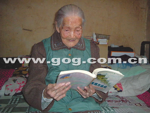(贵州毕节市)金沙县城关镇的刘光华老人,今年虽然已106岁,可老人却是耳不聋、眼不花,并且还能看书、写字。