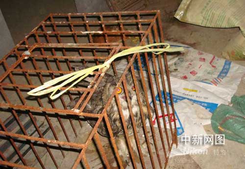 老孙知道猫头鹰是国家保护动物,个人不能随便处置。他和邻居拿来渔网,将其罩住,放置在铁笼内,并立即报警。经民警观察,这只猫头鹰站起来足有40公分高,两翅展开有近1.5米长,两只眼睛闪发着绿光,煞是怕人。