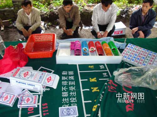 经调查证实,该赌档庄家专在湖南省汝城县与广东省仁化县交界的荒山野岭中摆档,用扑克牌以“百家乐”的方式聚赌,下注金额下限10元,最高5000元,三天前,该赌档刚从湖南省汝城县大坪镇一野外处迁来,没想到这么快就被仁化县警方端掉。