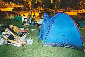 重庆大学草坪上,搭起了避难帐篷。 记者 杨帆 摄
