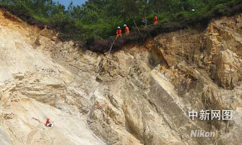 根据现场情况,指挥员和现场人员商议,考虑如果派消防员下悬崖救人,由于峭壁疏松可能使山上岩石塌落威胁被困者,于是决定采用从悬崖上放下救生绳索,并指导被困者使用绳索将自己绑住后拉上来的救援办法。随后,消防官兵一边安抚被困者稳定情绪,一边放下绳索指导其正确使用。
