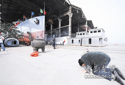 中山舰在安放于浮坞上之前,它首先要自浮到长江上。引人关注的是,中山舰右舷上有个被日寇炸出的大洞,中山舰下水时,洞里会不会进水?
