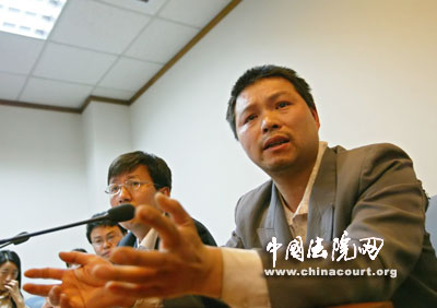 汪亮解做最后陈述:“我有彩票,为什么不给我500万奖金”。常鸣 图