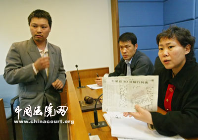 汪亮解将彩票和刊登获奖信息的报纸交给审判长。常鸣 图