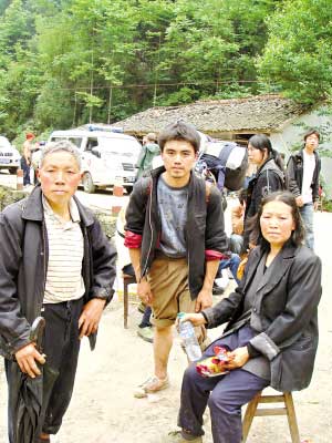昨天上午开始,也不断有村民从大山深处爬出来。为了生的希望,这些村民拖家带口,一路扶持,每个人到达山下的时候都一身泥泞。