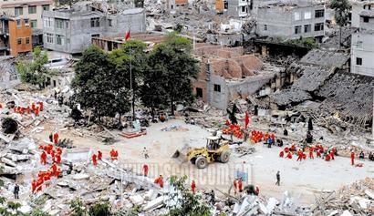 12日14时28分,平武县南坝小学,伴随着巨大的轰鸣声,地面突然开始剧烈摇晃,文具盒、书本从书桌上弹了下来。孩子们蜂拥着往楼下跑。地面的摇晃愈加剧烈,教学楼“轰”的一声全部倒塌,800余名师生无一幸免,全被压在废墟下面。此刻,小镇的房子也成片倒塌,老街的平房瞬间变成一堆废墟,无数正在赶场的民众被破碎的建筑掩埋。一个常住人口近万人的小镇,瞬间被夷为平地。