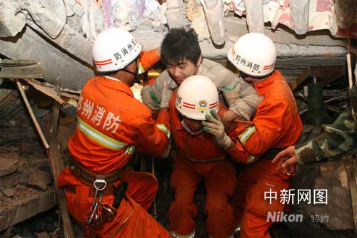 到十六日晚10时38分,经过8个多小时的连续奋战,这名被困废墟中的20岁男子被成功救出,而此时,他在废墟中已被困了104小时,创造了生命的奇迹。他的名字叫李青松。完