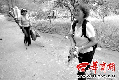 记者随同兰州军区451医院医疗队员们步行2公里山路,到达红岩村5组魏华友家。一进门,门厅下坐在沙发上的老太太开口就表示感谢,尽管儿子不在家,但不断有好心人送来吃喝。地震后她的儿子魏华友一家搬到镇上住进帐篷,而行动不便的老太太怎么都不愿意离开她居住73年的山沟,见到有人看望老太太显得特别高兴。