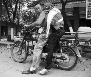 15日,英国《每日电讯报》刊登了一组图片,记录下中国抗震救灾过程中的一个个感人瞬间。在一张图片上,一个在地震中痛失妻子的男子,用绳子将妻子的尸体绑在背部,送她去太平间。在极大悲痛的折磨中,他努力要给妻子些许死后的尊严。因此,他饱含深情,将她的身体与自己绑在一起———然后用摩托车载着她前往当地的太平间。英国媒体称,这是大毁灭后存在的人性象征。