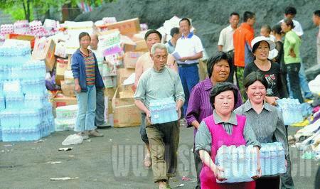 宋德芝说,经手救灾物资的工作人员都是机关干部,平时表现好,对群众负责任,他们经得起考验。洛水镇是一个工业镇,有180个社区小组和村民小组。目前在镇上生活的人口达5万,其中包括受灾的群众。在分配救灾物资时,要根据社区受灾情况适当分配,镇上发到村上,村发到组,再由组发到受灾群众手中,造册登记。