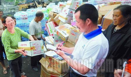 “我们有8个人,分布在大院的几个方位。”他说,每天,来自云南、重庆、贵阳等全国各地的车辆是一辆又一辆,他们运送的有水、面包、蔬菜。采访中,记者注意到一个细节,张华峰把捐赠救灾物资的单位和个人都亲切地称为“客人”,热情接待,如实记录。令张华峰感动的是身边的一些普通人。负责卸货的武警官兵忙完活之后,他们原地休息,从不喝一瓶救灾水,吃一块救灾面包。等待大卡车装满救灾物资,张华峰将车上物资一一记录在册,水50件,方便面60包。洛城村主任方远福在登记册上签完字后,坐上卡车出发了。