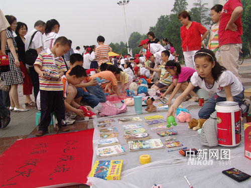 中新网武汉5月24日电 (徐金波 乐钢)武汉市江岸区一千多名少先队员拿出自己心爱生活学习用品,24日在汉口江滩举行义卖活动,筹集了2万多元善款,希望用这笔钱资助四川地震灾区的少年儿童过上一个快乐的“六一”国际儿童节。