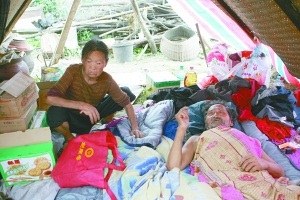 张兴琼是肖志富的老伴,这个80岁的老者步伐稳健,她指着窝棚旁碎石与木椽堆,“老头子就压在这。”虽然被压在废墟,肖志富却并无大碍,仅仅是额头擦破点皮,碗口粗的木椽横架在老人的腰间,碎石瓦砾让他仅露出头颈,乡亲们一块一块地清理废墟,才使老人露出上半身。