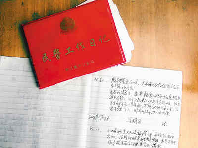 胡涛平时就有记东西的习惯。大地震后,他从派出所借了本“民警工作日记”的本子,随身揣着,随时记录。红色的小本子用坏了,他又不得不换了一个练习本。他希望能完整记录临时指挥部的每一个命令和安排。他说,这不仅是一种记忆,更重要的,是为了能在今后总结得失。