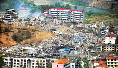 震后的北川县城 本报记者 李舸摄