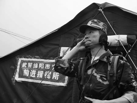 5月12日下午3点多,武警绵阳支队政委徐超,带着200名突击队员,向北川进发。从出发到抵达北川中学,突击队有一半的时间徒步前进。队伍中,有一个人与其他人不同,他的背上背着通信设备。他叫陆苇,当兵8年,二级士官,是武警绵阳支队警卫通信中队通信班班长,也是该支队彼时前往北川救援时惟一的通信兵。跳过一块又一块横亘在路中的巨石,陆苇夹在队伍当中奔跑,他听到自己心中有个声音在喊:“快一点,再快点!”