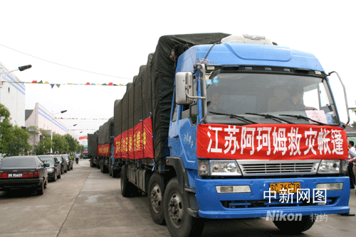 5月28日,扬州举行万顶帐篷发往灾区的发车仪式。作者 崔佳明