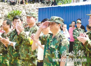 握着首长的手,袁仕聪泪眼婆娑。这位因三次路过母亲和侄女遇难废墟没停步抢救,而是去执行其他抢救任务的上校,感人的事迹在青川城早已为老百姓所传唱,国内很多媒体也多次报道过。但对袁仕聪来说,今天这个军礼最让他欣慰,“能够得到首长的军礼,我觉得自己得到了认可,足以让我告慰母亲和侄女在天之灵了。”