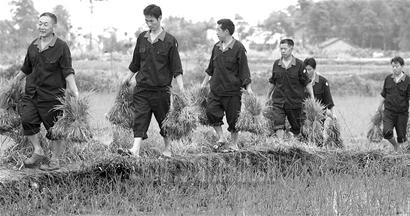 昨日上午,一支由12人组成的志愿者队找到曾世明:“能不能为你做点儿事?”走在前面的是名40岁左右的男子,他叫靳少云。让曾世明意外的是,靳少云竟是重庆某公司的总经理。跟在他身后的11名男子,都是这家公司的高管。曾世明“很不放心”地把靳少云等人带到田间,这12名志愿者挽起裤管下田了。拔秧、插秧,一行人干得非常熟练,要不是看到穿在他们身上的统一着装以及粘贴在他们衣服上的红十字会标记,还很难让人联想到,他们是呆在办公室内的白领(上图)。几个小时后,2亩左右的水田披上了“绿装”。(记者王仁刚钟蓉 摄影谭曦)