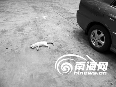 当天下午2点许,记者在该小区内的一辆汽车旁,看见到了被踩死的猫。报料人邝先生告诉记者,事情发生在今天中午12点左右。