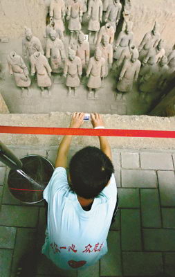 参观兵马俑的游客并不算少,但的士司机周红告诉记者:“这正是旅游旺季,以前这个季节都是头挨头,地震后游客起码少了六成。”