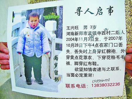 据死者的爷爷王新有介绍,他有两个儿子,去年10月29日,二儿子3岁的儿子王兴旺突然失踪,当时家人以为是孩子走失了,全家人一边到处张贴寻人启事寻找,一边报案。找了很久,没找到。