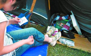 唐家山上的“一盆儿水”闹得下游绵阳城的居民纷纷抱着家当上了山。“背井离乡”本是件“苦活儿”,但什么事儿到了天性豁达的四川人那里,却总能找出乐子来。