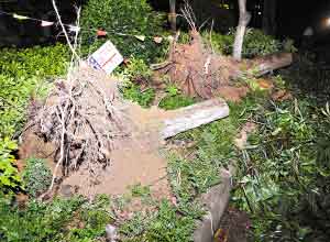 广从公路上多棵大树被连根拔起。乔军伟摄