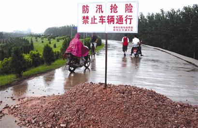 昨日中午,记者在汉江蔡甸永固堤入口处看到,干堤道路已被沙土挡住,竖有一块“防汛抢险”的警示牌。前行数百米,至永固堤中段,可见堤顶的水泥路面有大片塌陷,两根涵管从堤身穿过。经测量,塌陷处长15米,宽8米,最大塌陷深度约0.3米。
