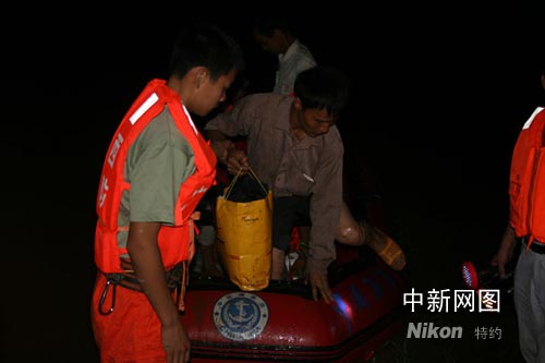 23时21分,贺州海事处的一艘橡皮艇冲锋舟运送到现场,消防官兵、公安民警又重新开始营救。由于橡皮艇冲锋舟每次只能乘坐五个人,指挥部决定,先让两名熟水性的消防官兵和海事处人员及熟悉孤岛地形的群众上岛侦察地形,之后冲锋舟再运送四名熟水性的消防官兵上岛同第一次上岛人员会合展开营救工作。