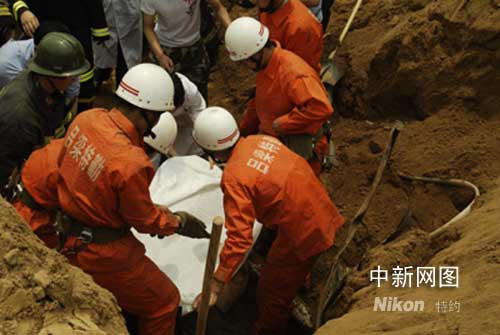 第一名遇难者的遗体被找见时的情形。张雷杰 渠升飞 摄