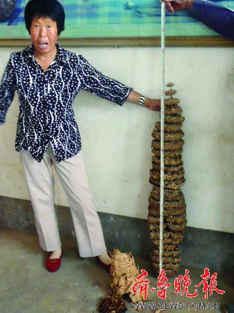 山东:马蜂筑起27层“高楼”高1.15米(图)