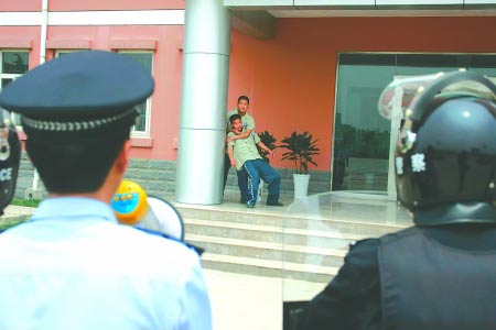“张某,你已经被包围了,放下手中的凶器举手投降,这是你唯一的出路!否则,你将承担严重的法律后果!”宣教组对“罪犯”进行劝说教育。“少废话,叫监狱领导来!不伤害人质可以,你们给我准备两万块钱,再准备一辆车,我就放了他!”张某恶狠狠地说,并把玻璃顶在李某的喉部,李某直叫“救命”。