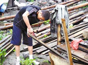 什邡市湔氐镇的气温有点高,徐星手里有根钢筋,任务是撬下屋顶仍完好的椽子。他已记不清何家是第几站,说自己只是在做力所能及的事情。