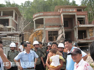 三亚市市长陆志远(中)现场坐镇指挥拆除违建“别墅”