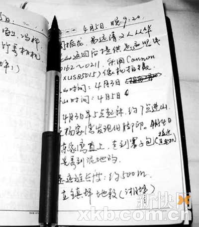 国家林业局镇坪专家组笔录周正龙等发现老虎脚印,周拍摄下记录信息。