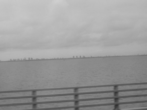 大巴继续向前开,大家也都没有特别在意,当大巴离北岸引桥渐行渐近时,海盐的景象也越来越清晰,映入眼帘的除了滩涂外就是比较低矮的房子。